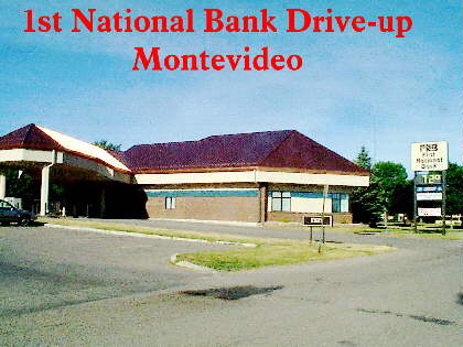 The First National Bank Satellite drive in bank was built in the fall of 1993. It is located next to Arneson Drug in the east business district of Montevideo. With it's copper roof and modern design First National has definitly made a major contribution to the East Hiway 7 business district.