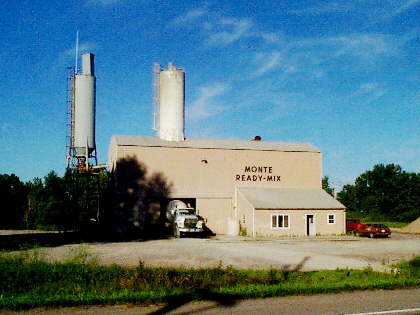 The Monte Ready Mix plant was built in the late 1970's. It moved from it's old location, now the site of Urethane Systems on State Road to this site mainly for the convenience of being next to the Hallet gravel pits. It is owned today by the Richter's who also have a plant in Granite Falls Mn.